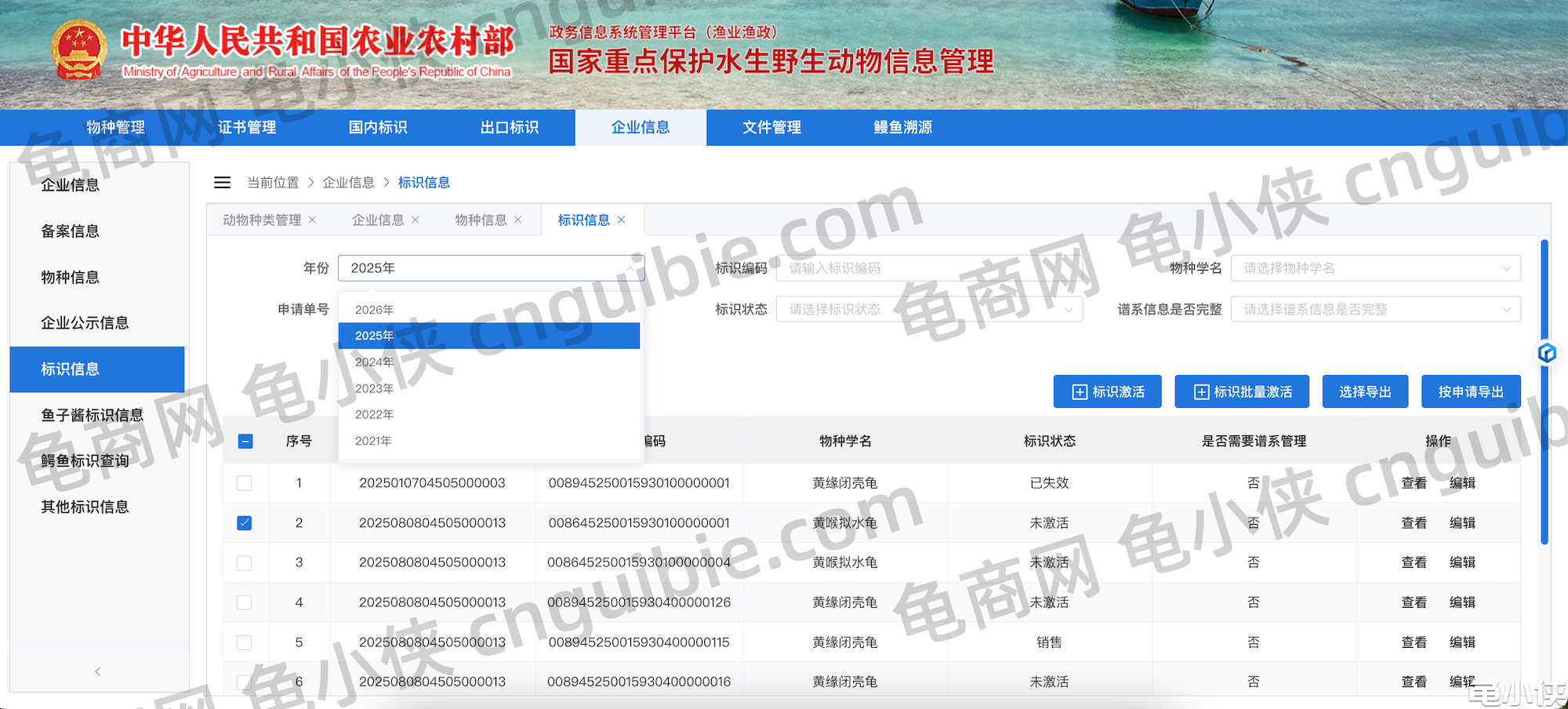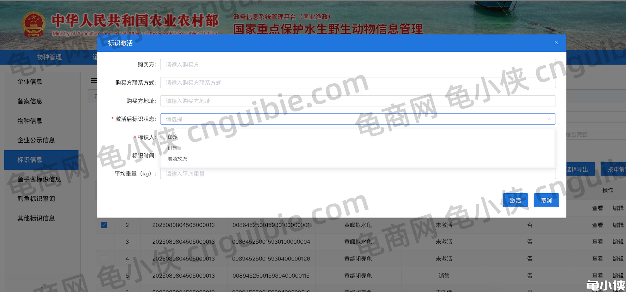 都是在 农业农村部的-国家重点保持水生野生动物信息管理 中操作。